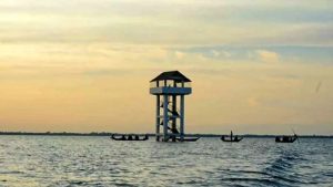 শতবর্ষী বটবৃক্ষের ছায়ায়, বিশাল হাওরের বিশুদ্ধ বাতাসের ঝাপটা লাগে গায়ে। থই-থই করা পানির ছলাৎ ছলাৎ শব্দে মন আর বাধ মানে না। এরই মধ্যে আমাদের সাথে যোগ দিয়েছেন সুরমানিউজ২৪.কমের সাংবাদিক আব্দুল্লাহ আল নোমান। তাকে নিয়েই এবার ট্রলারে করে ছুটলাম বিশাল জলরাশীর বুকে। পড়ন্ত বিকালে হাওরের বুকে ভেসে চলা ট্রলারে তপন দাদার কণ্ঠে, ভাটিয়ালি গান শুনতে শুনতে ওয়াচ টাওয়ারে পৌঁছাই। ট্রলার ছেড়ে একেবারে টাওয়ারের উপরে গিয়ে উঠি।