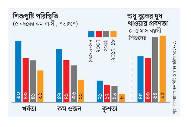 প্রত্যাশিত গড় আয়ু, মাতৃ ও শিশুমৃত্যু, মোট প্রজনন হারের (টিএফআর) মতো স্বাস্থ্যসূচকে বাংলাদেশ প্রশংসনীয় সাফল্য অর্জন করেছে। গত ৫০ বছরে পুষ্টির বিভিন্ন সূচকেও বাংলাদেশ দৃষ্টিগ্রাহ্য উন্নতি করেছে। তবে পুষ্টিবিদদের একটি অংশ মনে করেন, পুষ্টিতে দেশের উন্নতি হলেও সব সময় ধারাবাহিকতা বজায় থাকেনি।