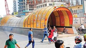 গতকাল দেখা যায়, পথচারীদের পারাপারের জন্য নির্মিত নতুন পদচারী-সেতুটির এক পাশের সিঁড়ি সড়কের মাঝামাঝিতে নেমেছে। ফলে সড়কের এক পাড় থেকে অন্য পাড়ে এলেও পুরোপুরি সড়ক পার হতে পারবেন না। বাকি অংশটুকু যানবাহনের মধ্য দিয়েই পার হতে হবে। সড়কের এক পাশের ফুটপাতে পদচারী-সেতুর সিঁড়ি বসানোর জায়গা না থাকায় এই ব্যবস্থা করতে হয়েছে বলে মেট্রোরেল কর্তৃপক্ষ জানিয়েছে।